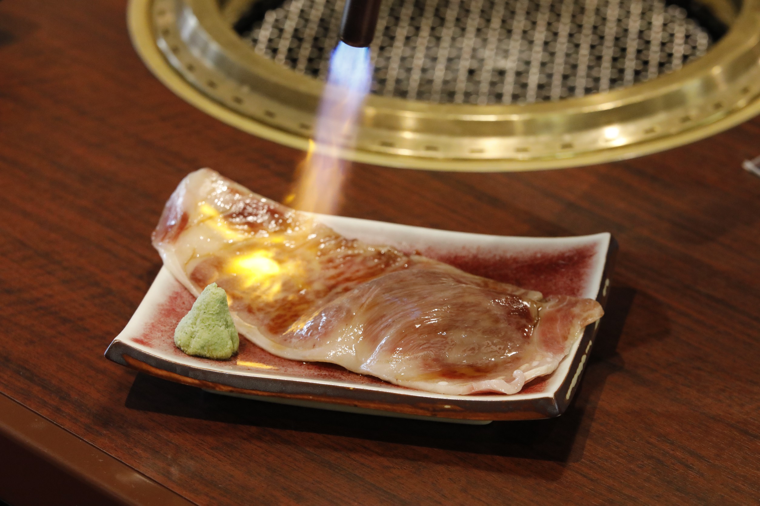 テーブルに配膳した後にお客様の目の前で炙り完成となりますので、まるでおばけの舌が炙られているように見えるかも、、、