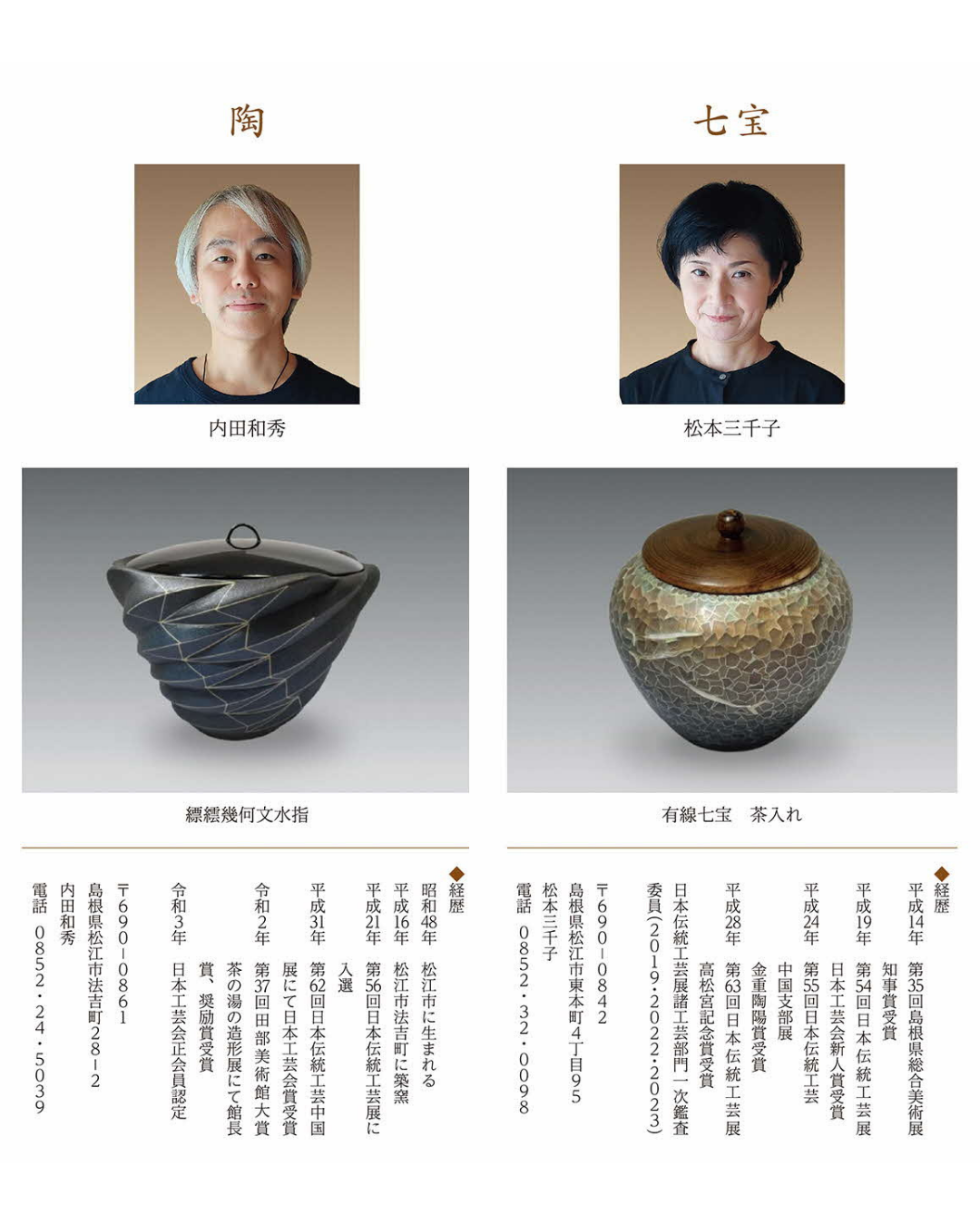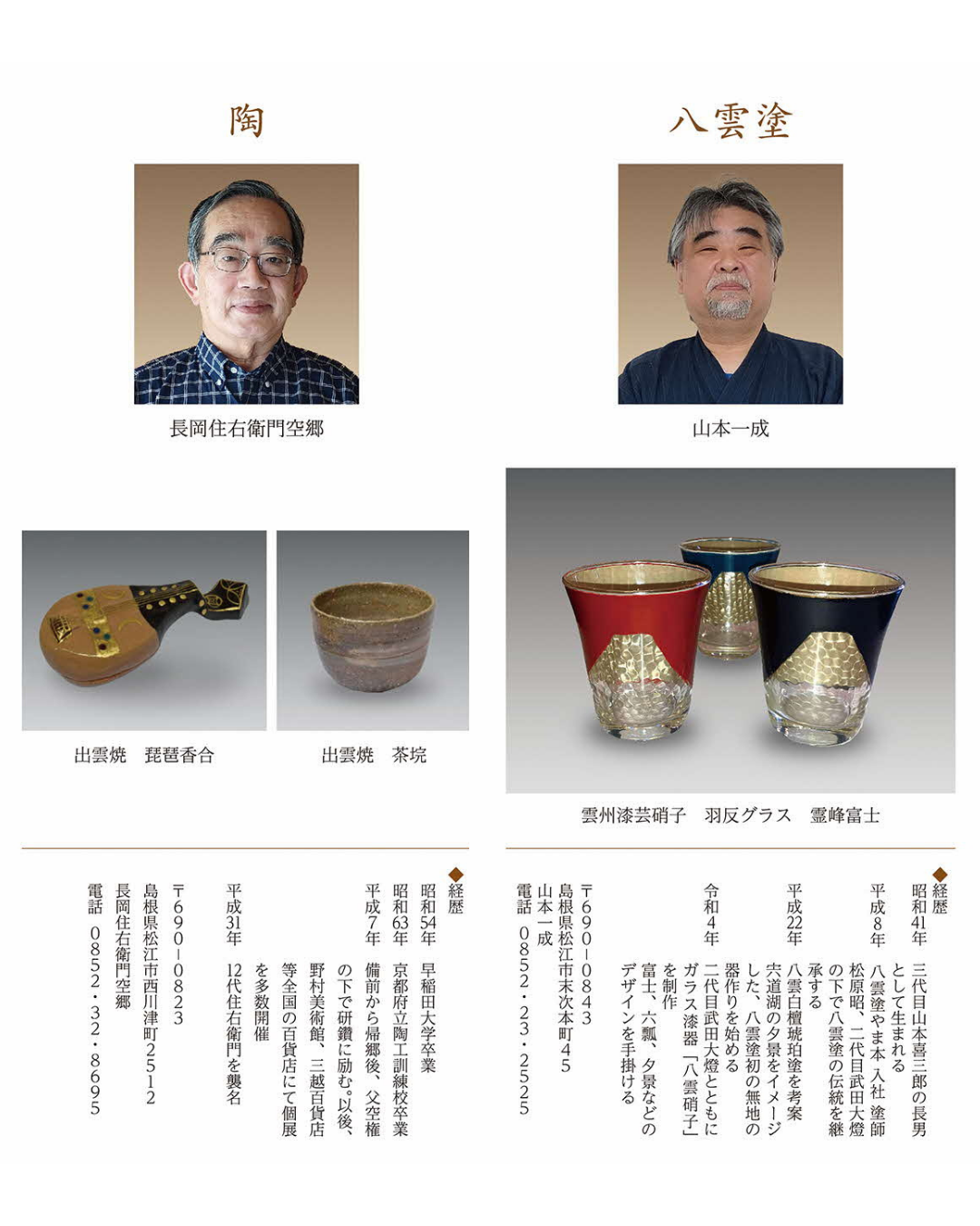 松江の風土とともに息づく工芸の美、その真髄を感じて頂ければ幸いです。